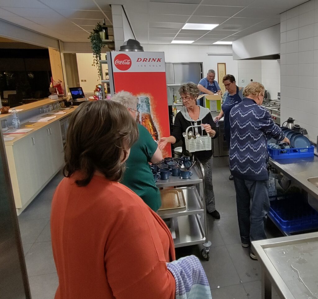 Waar we na deze laatste warme maaltijd in 2024 de koks in de spotlights plaatsen, willen we ook de andere vrijwilligers die het mogelijk maken om een grote groep mensen te bedienen niet vergeten. Carolien, Willy, Hieke, Ellen, Bianca, Anna, Marlies, Jetze, Appie, Kees en waarschijnlijk ben ik nog mensen vergeten. Mensen die het fijn vinden om SAMEN mens te zijn.