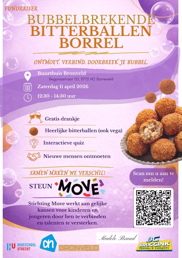 en de mogelijkheid om de fantastische stichting MOVE te steunen. Scan de QR-code op de flyer en KOM ERBIJ!