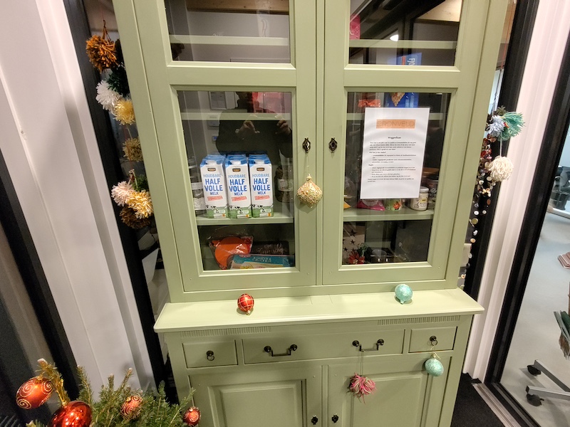 In het toegangsgebied van ons buurthuis staat de gepimpte weggeefkast. En die is zo voor de feestdagen goed gevuld. We gaan er samen voor dat deze kst steeds beter gaat dienen waarvoor hij bedoeld is.