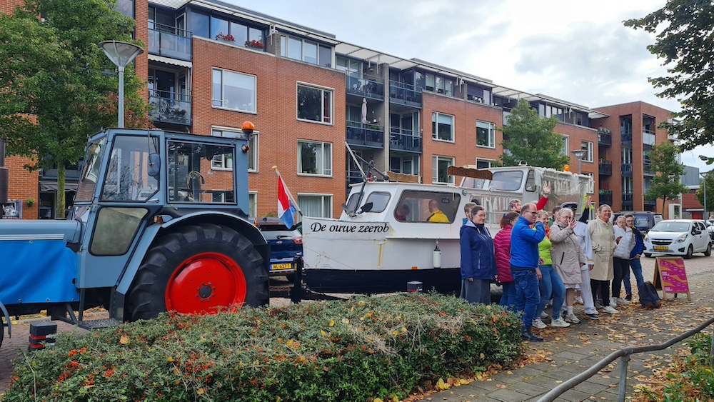 En Welzijn Barneveld had een fantastisch ludiek vervoersmiddel ingezet om zoveel mogelijk mensen uit onze wijk naar Bronveld te ‘varen’. En dat is gelukt. Tot drie keer toe kwam de boot vol passagiers voor. Wat gaaf!!!
