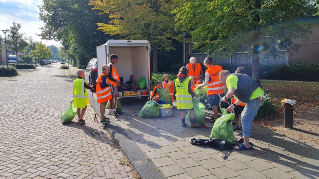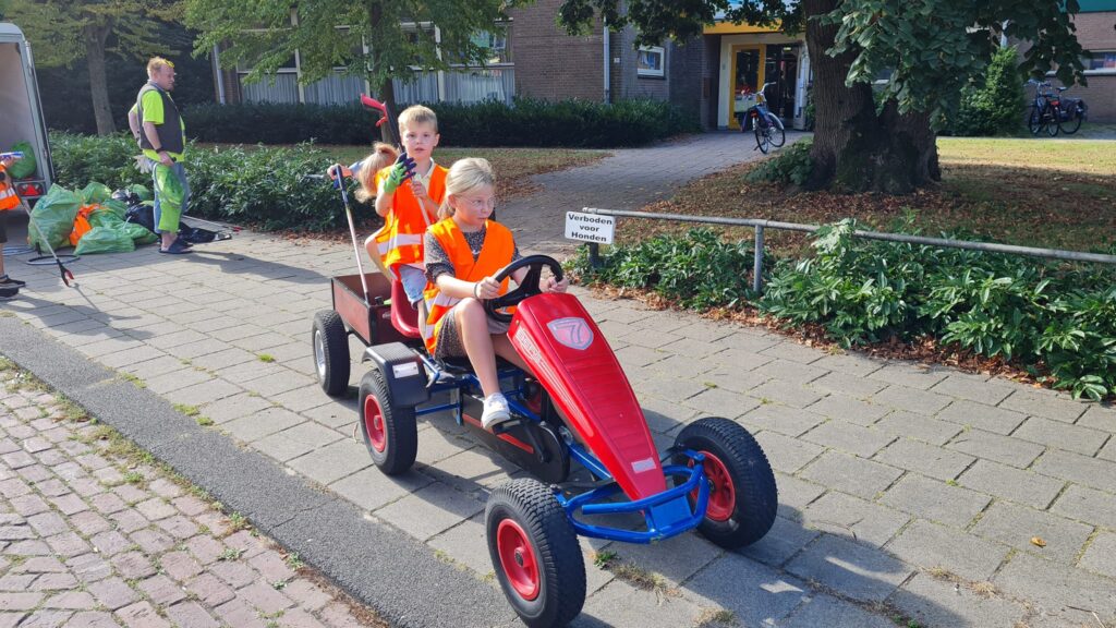 Prachtig om te zien hoe fanatiek de kinderen zich inzetten voor hun buurt. Er mocht daarbij gebruik gemaakt worden van de Scharrelkar van de gemeente.