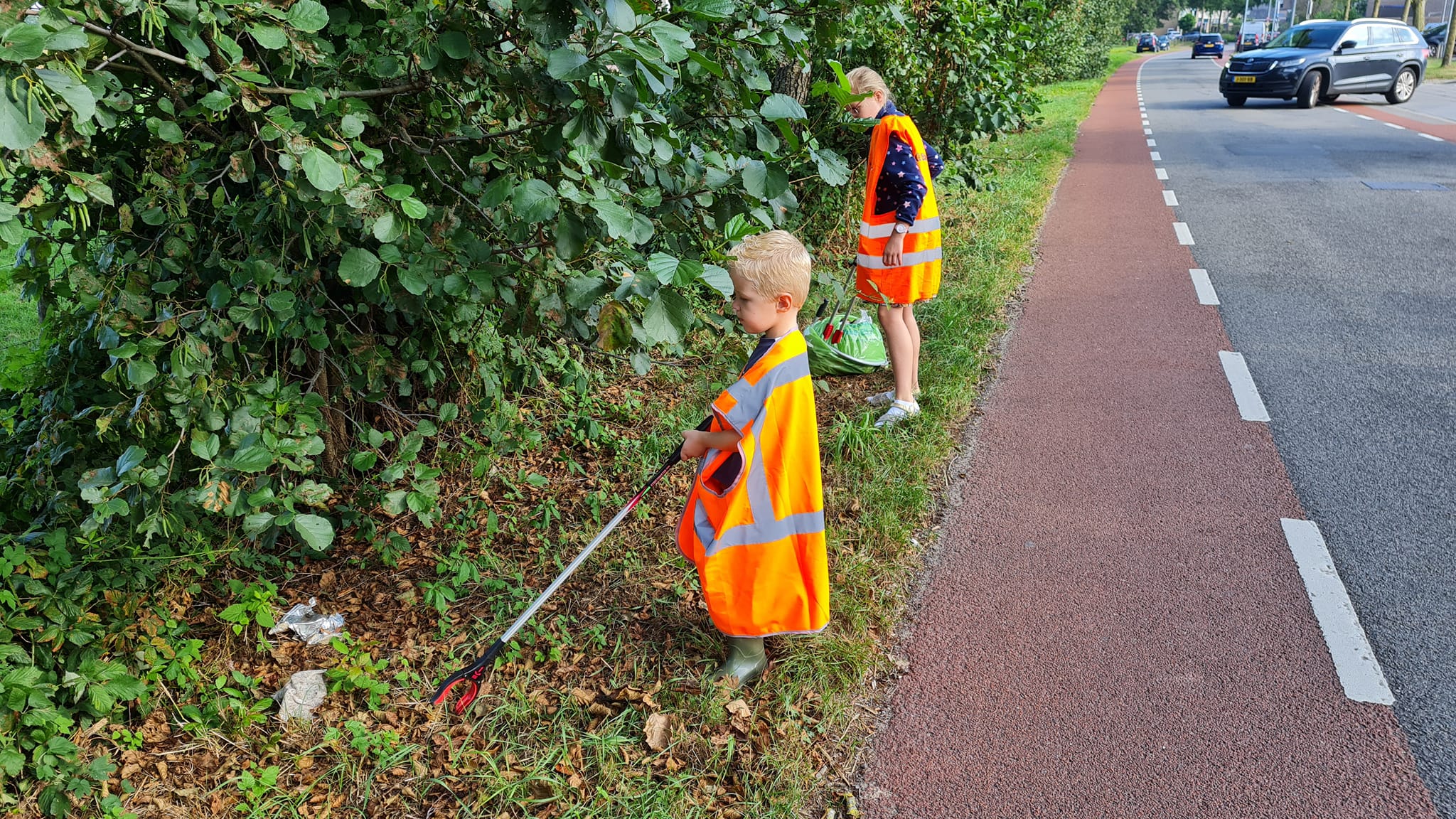Prachtig om te zien hoe fanatiek de kinderen zich inzetten voor hun buurt. Er mocht daarbij gebruik gemaakt worden van de Scharrelkar van de gemeente.
