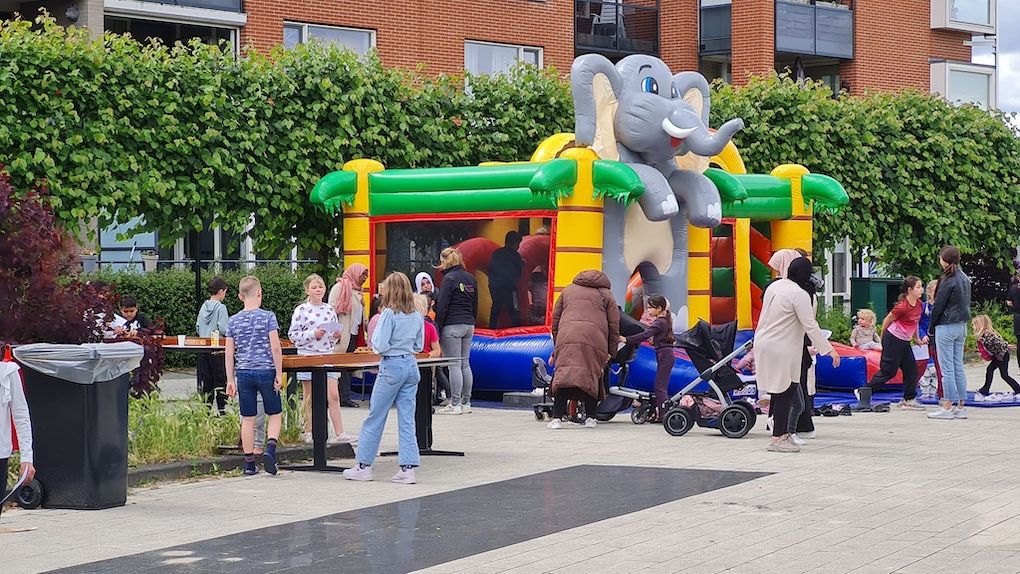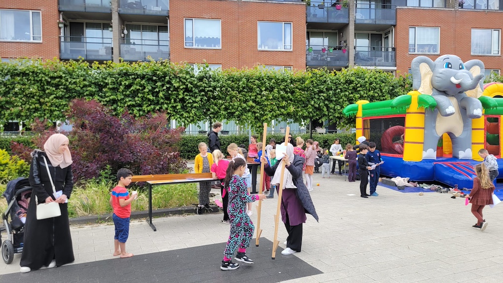 Meer dan 140 kinderen kwamen naar het Oldenbarneveldplein toe voor de jaarlijks Buitenspeeldag met Oud Hollandse spelletjes en het springkussen. Ook de limonade en de ijsjes vielen goed in de smaak! Wat gezellige Buitenspeeldag 2024 leverde het op.