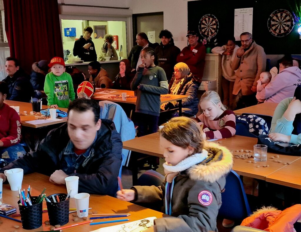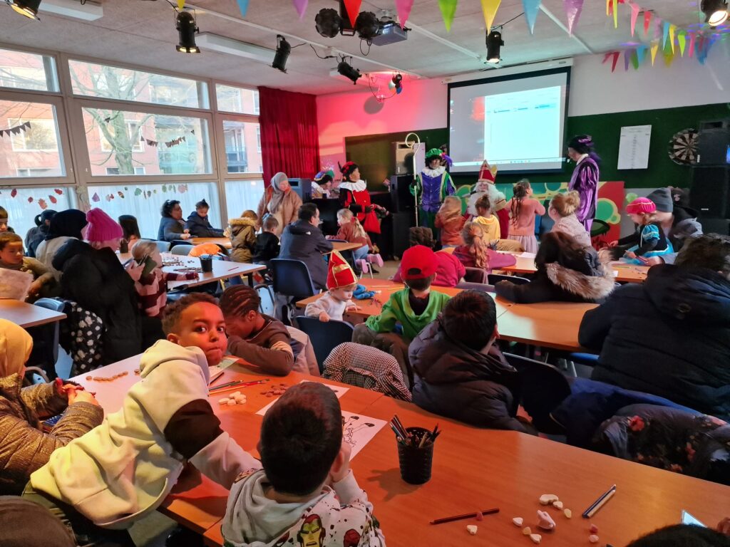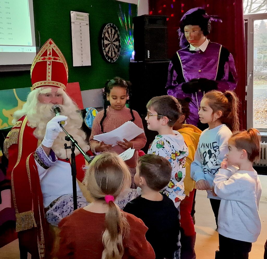 Veel blije kinderen bij Sint in buurthuis Bronveld