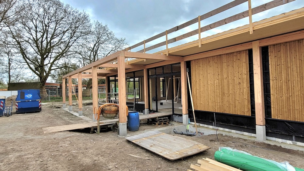 Nu het gebouw wind- en waterdicht is, start de afbouwfase. De werkzaamheden liggen op schema. De aannemer gaat starten met de binnenwanden en de afwerking. Naar verwachting zijn de werkzaamheden eind mei klaar. Bij zowel het ontwerp voor de nieuwbouw als voor de uitvoering werd en wordt samengewerkt met lokale partijen uit de gemeente Barneveld en regio FoodValley. Zo maakte Fier architecten uit Nijkerk het nieuwe ontwerp. De werkzaamheden worden uitgevoerd door Installatie adviseur Mosterdadvies uit Barneveld, Aannemer Bouwbedrijf van Driesten uit Harskamp en Installateur Hartkamp uit Barneveld.